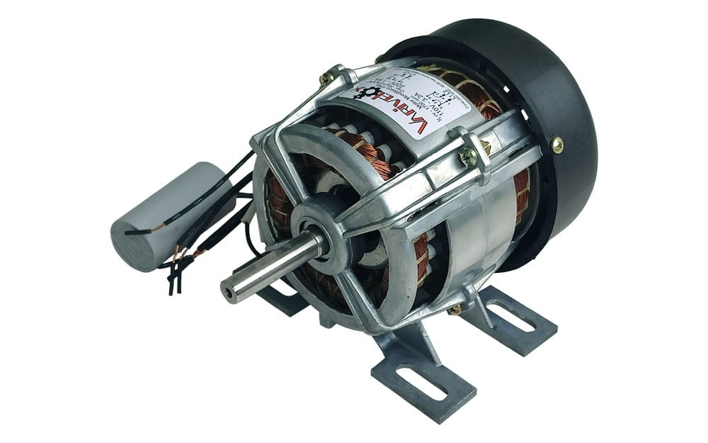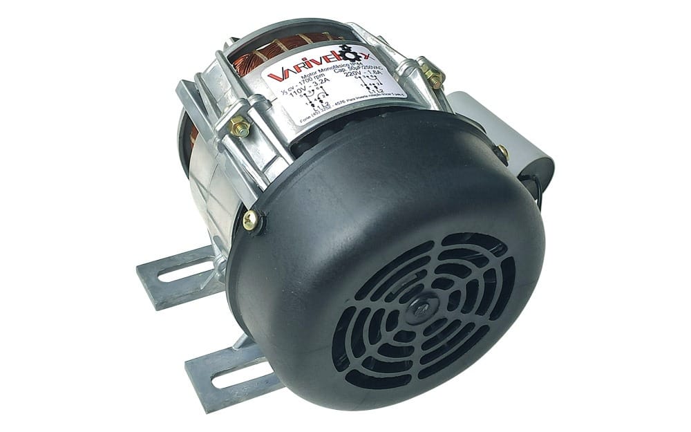 Motor Varivelox IP00, fixação por base (pé), fabricado na potencia de ate 0,25 0,33 e 0,50cv, disponíveis na voltagem monofásico e trifásico, com rotação de saída 860, 1100, 1700 ou 3500rpm, motor possui carcaça em alumínio injetada, eixo em aço 1045, e mentalização feita por rolamentos.