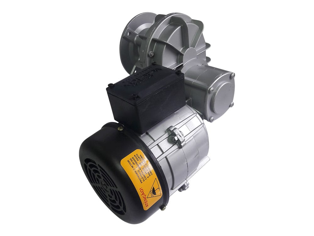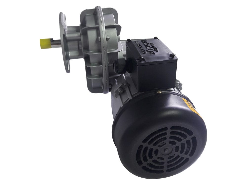 Motorredutor VXRSVX, possui uma engrenagem tipo rosca sem fim, aliada a uma engrenagem de dente reto, proporcionando uma grande redução e alto torque, modelo com baixa rotação e compacto.